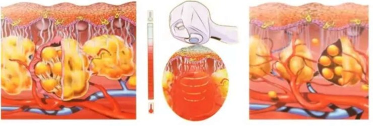 Focused single-stage radio frequency can quickly and effectively break down collagen fibers, separation of collagen tissue structure.